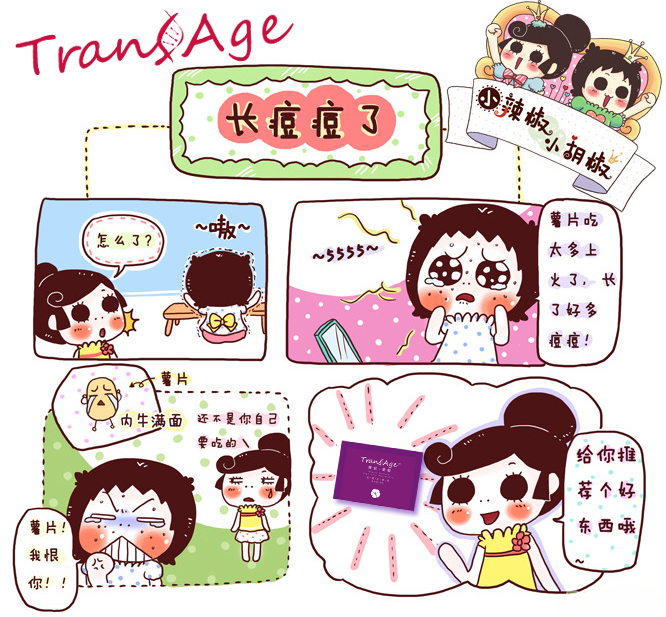 如果你最近被“成人痘”困扰,除了求助于瓶瓶罐罐的护肤品,不妨试试每天喝一小杯 TransAge 高芦红酒素。美国加州大学洛杉矶分校的研究人员发现,白藜芦醇能帮助治疗粉刺。而TransAge高芦红酒素每袋中的白藜芦醇含量高达500mg,相当于500杯红酒的营养价值。